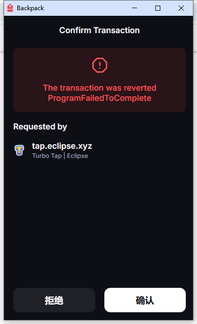 连接钱包显示The transaction was revertedProgramFailedToComplete