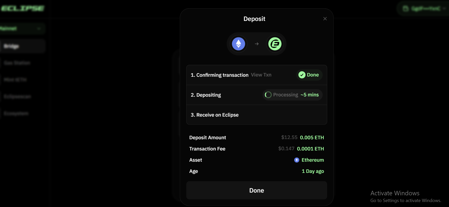 my bridge from eth mainnet to eclipse are stuck for a day , eth tx hash 0xbd94afe54e8a0202371867d7382a9ecef3299eae0852bc533663fb260951da1d